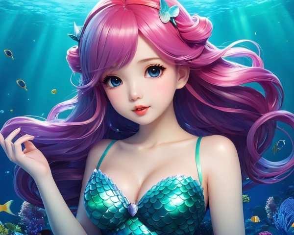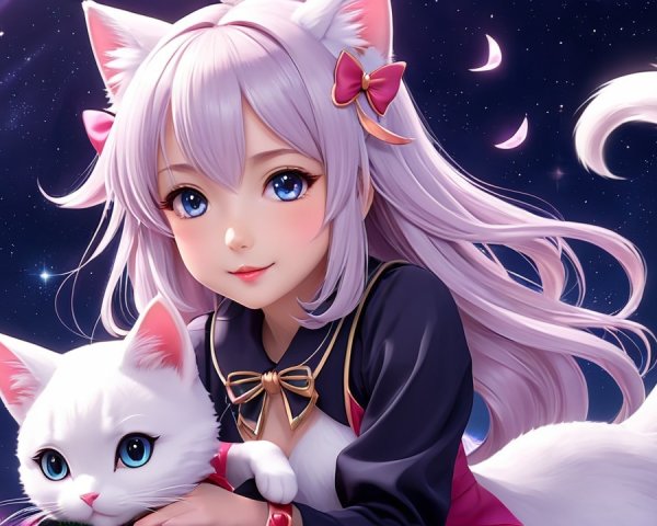A charming anime character blends features of an elf and a catgirl, adorned in a stylish strapless swimsuit. With playful ears and a whimsical tail, she embodies a delightful fantasy vibe.