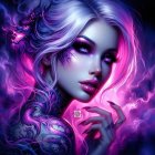 Glamorous Woman with Vibrant Purple and Blue Hair
