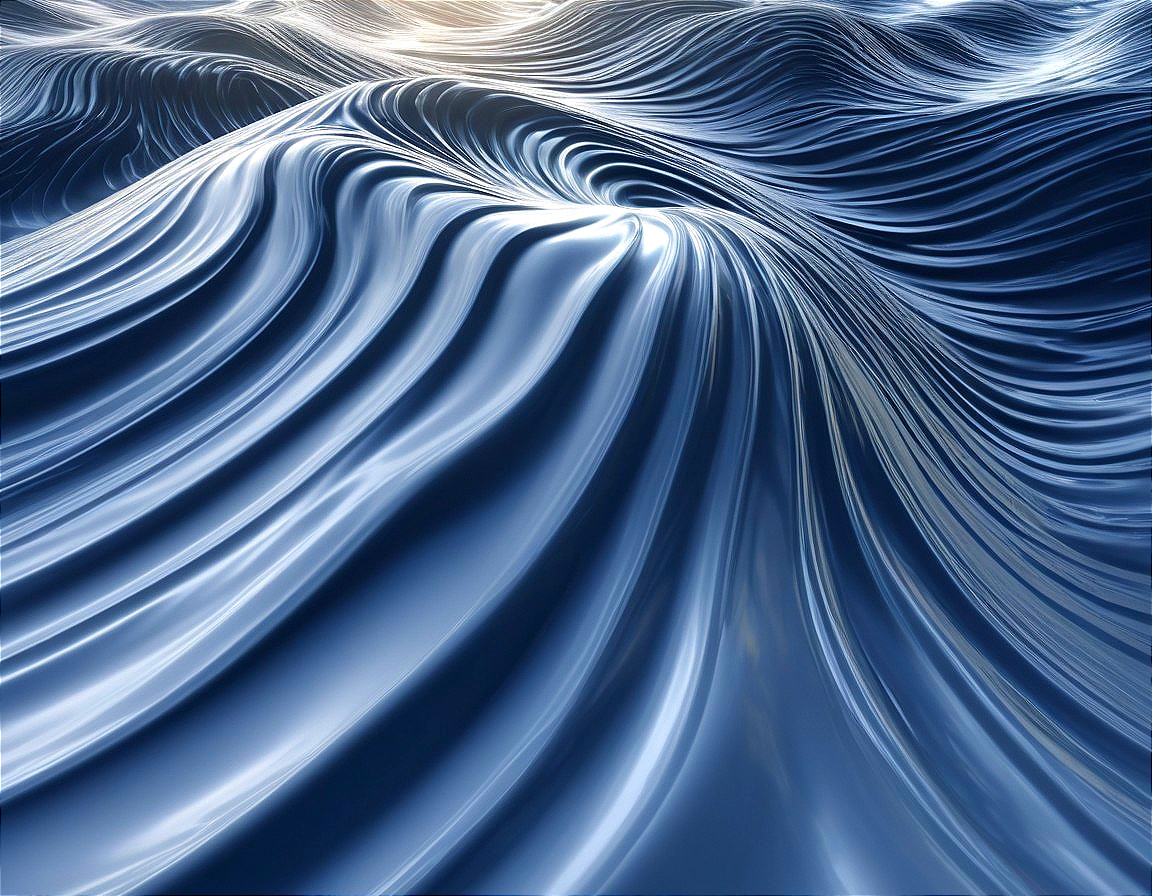 A digital artwork of stylized waves with smooth, flowing lines in shades of blue creating a calming and surreal oceanic texture.