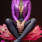 Model on Pink Lotus Flowers in Purple Bodysuit