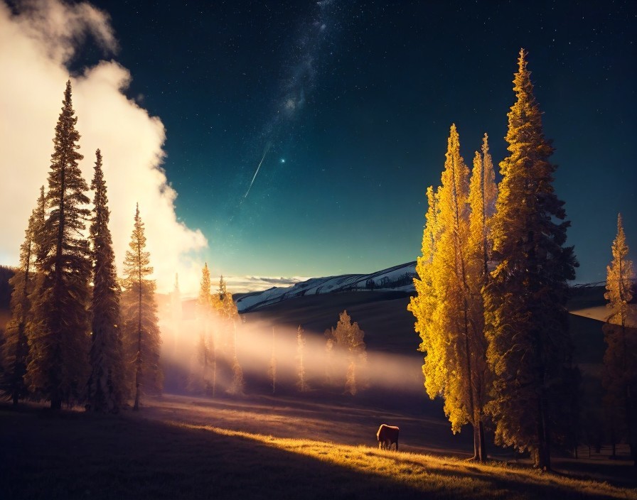 Starry night sky, serene meadows, soft moonlight, gentle shadows, lone figure, peaceful ambiance, protective angels, divine presence, prayerful posture, celestial beings, guiding light, twinkling stars, heavenly protection, tranquil setting, spiritual connection, deep faith, comforting solitude, reassurance, hope in darkness, ethereal atmosphere, glowing aura, calming colors of blues, purples, and whites, digital painting, realistic details, emotive expression, by William Blake and Gustave Doré, Artstation.