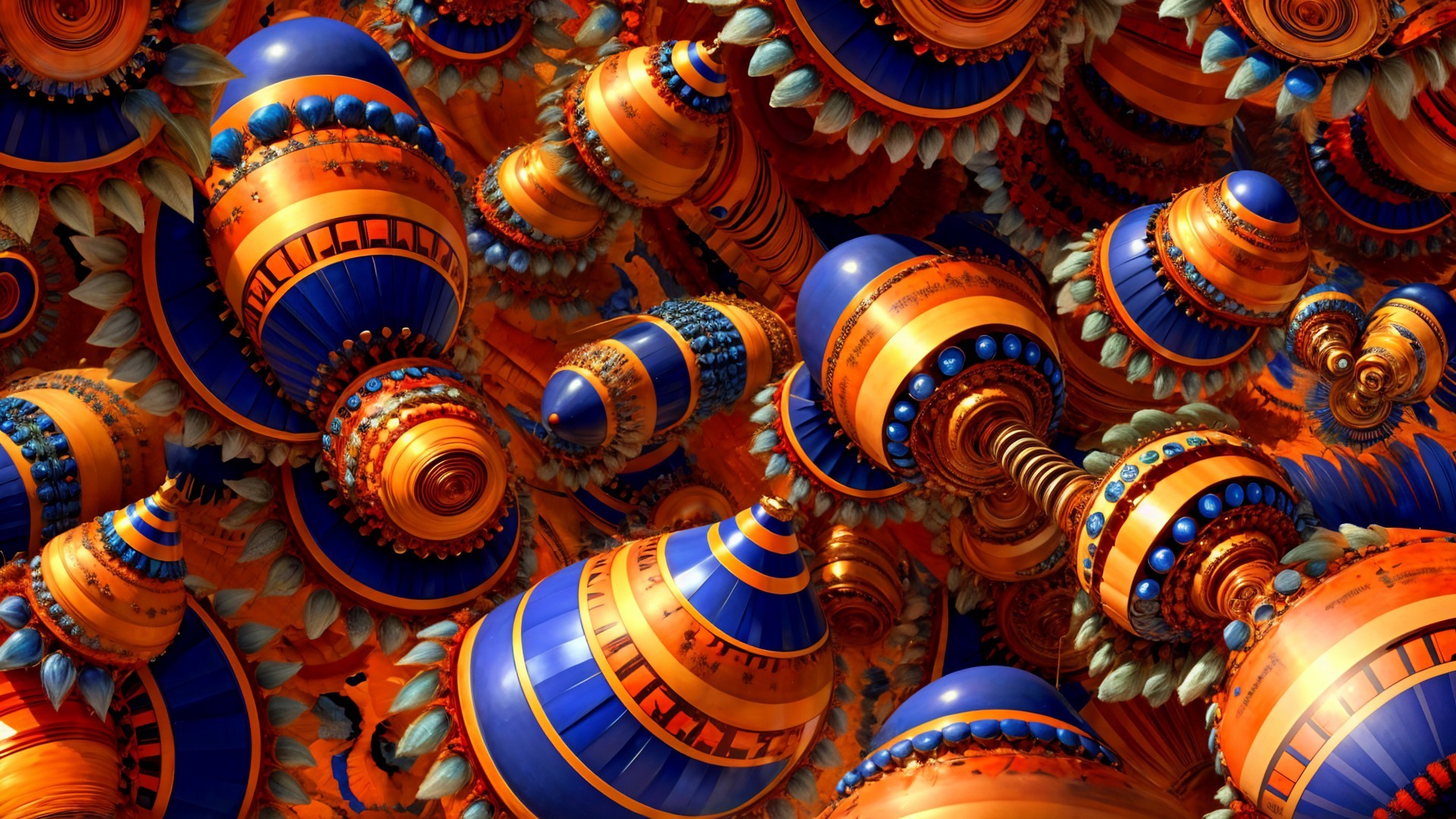 A breathtaking landscape of fantastical castles and towers, bathed in vibrant hues of orange, pink, and blue. The structures rise majestically from a serene body of water at sunset.