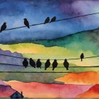 Vibrant Watercolor Sky with Silhouetted Birds
