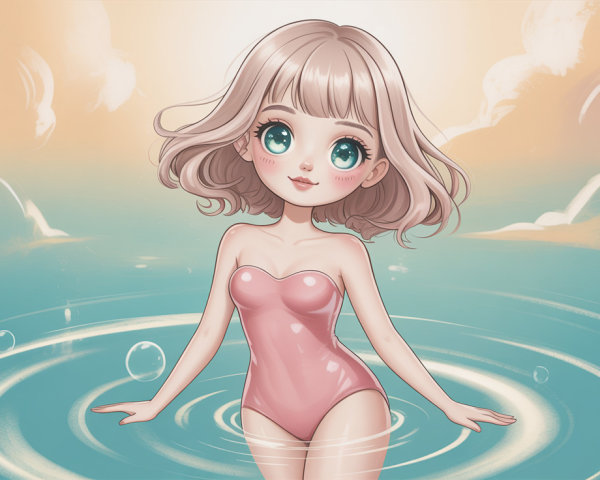 A charming anime-style lava dragon playfully dances in the rain, its fiery scales contrasting with the droplets. The scene captures a whimsical blend of warmth and coolness, creating a magical atmosphere.