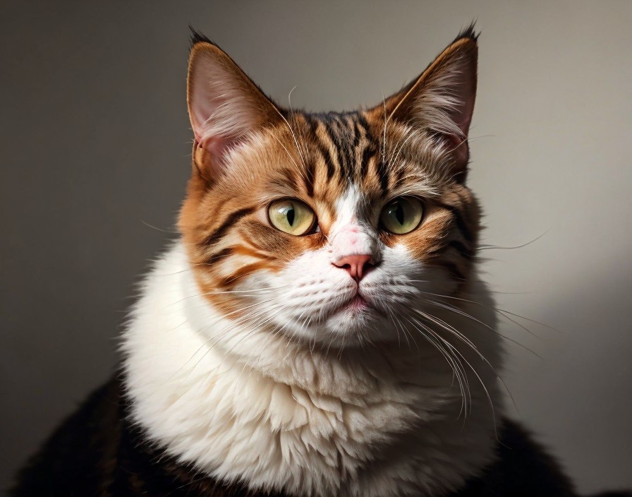 Brown and White Striped Cat with Yellow Eyes on Grey Background