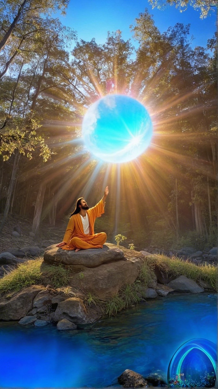 Elegant figure in flowing robes with radiant halo