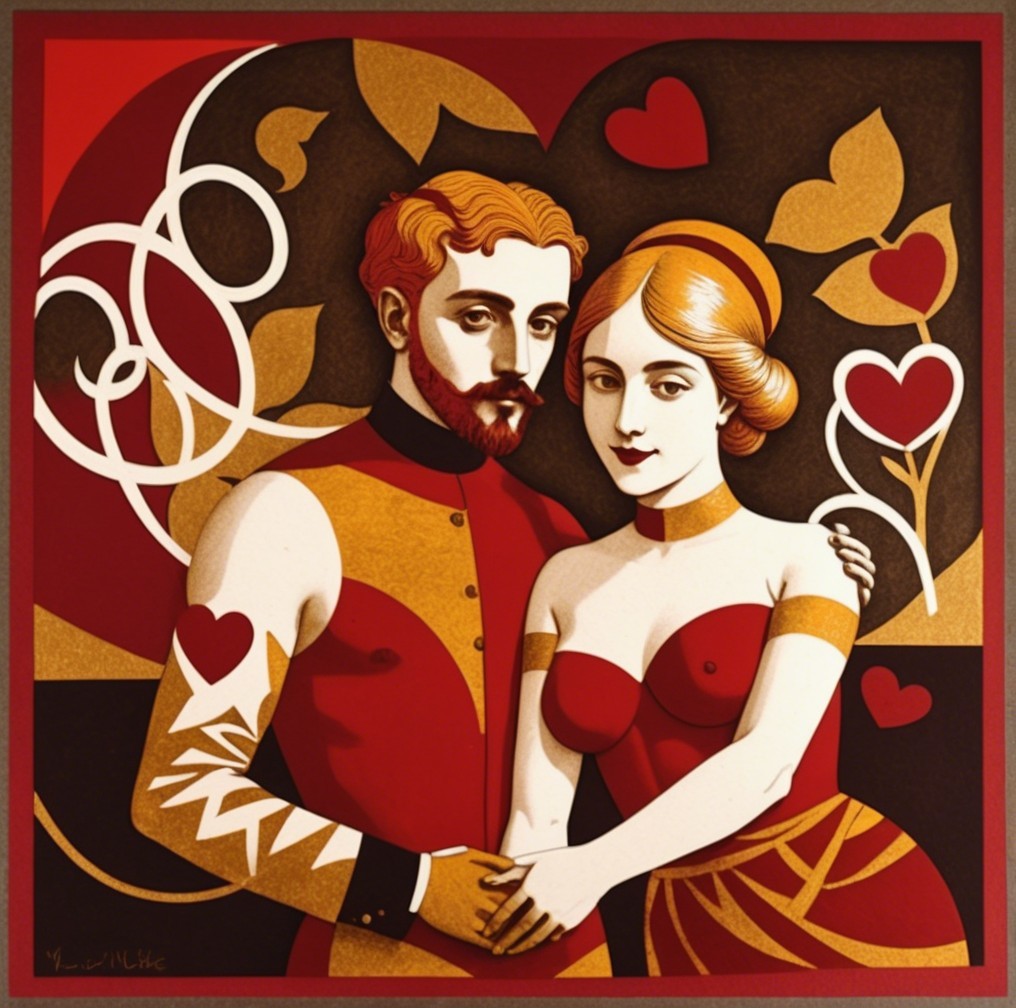 This collection captures the essence of love through intricate etchings and stylized forms. Each image portrays romance in a unique way—whether through symbolic gestures, golden details, or poetic compositions. The color palettes blend rich reds, deep blacks, and luminous golds, evoking passion, devotion, and warmth. These visual stories celebrate love as an art, a feeling carefully crafted and timelessly preserved.