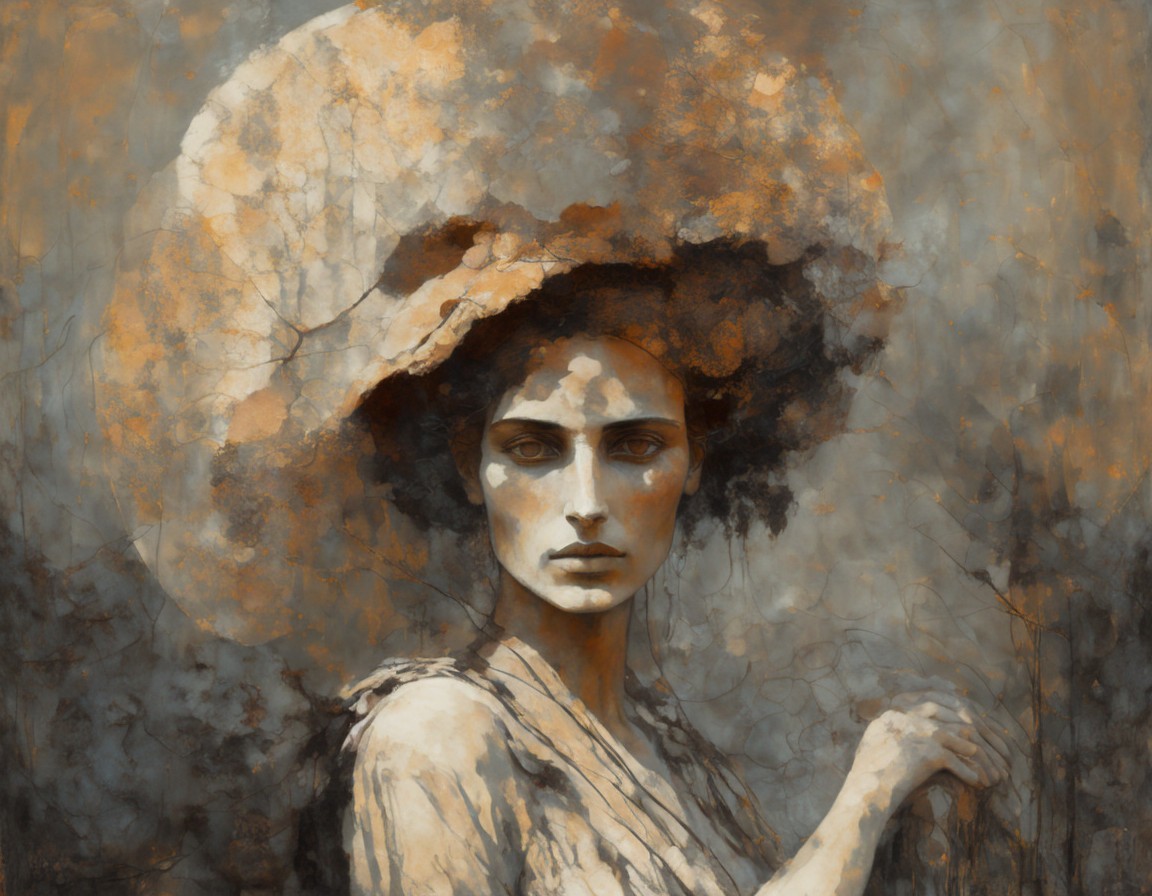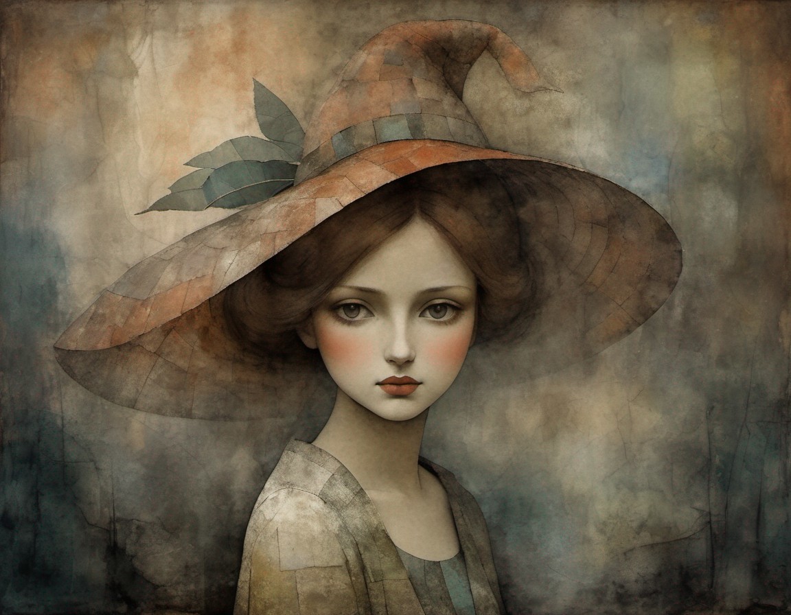 Beautiful woman portrait in burnt sienna, patina of ancient stone with moss, art brut, moody, somber, desaturated colors, in the style of Paul Klee, Arthur Rackham But wasn't it beautiful? Didn't we forget about the sad times for a while? smoke and gossamer, nostalgia, art brut, moody, somber, desaturated colors, in the style of Paul Klee, Arthur Rackham, Alphonse Mucha Patchwork pandemonium, portrait in plutonium, patina of ancient stone with moss, art brut, moody, somber, desaturated colors, in the style of Paul Klee, Banksy, Arthur Rackham, Prompt by KRW