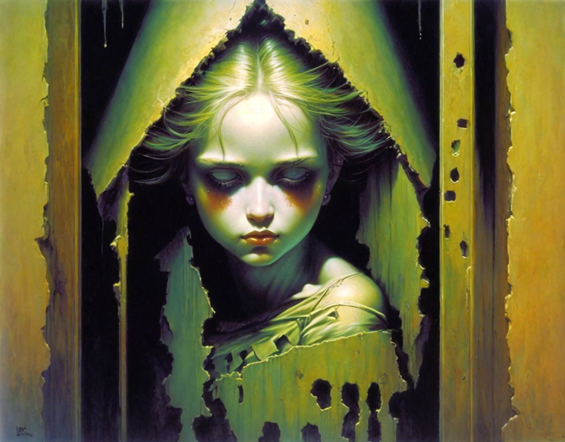 Haunting Portrait of a Young Woman with Blue Eyes