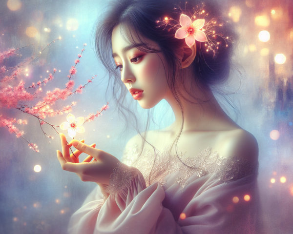 A woman with red hair in a green dress sits beside a black cat against a brick wall.
