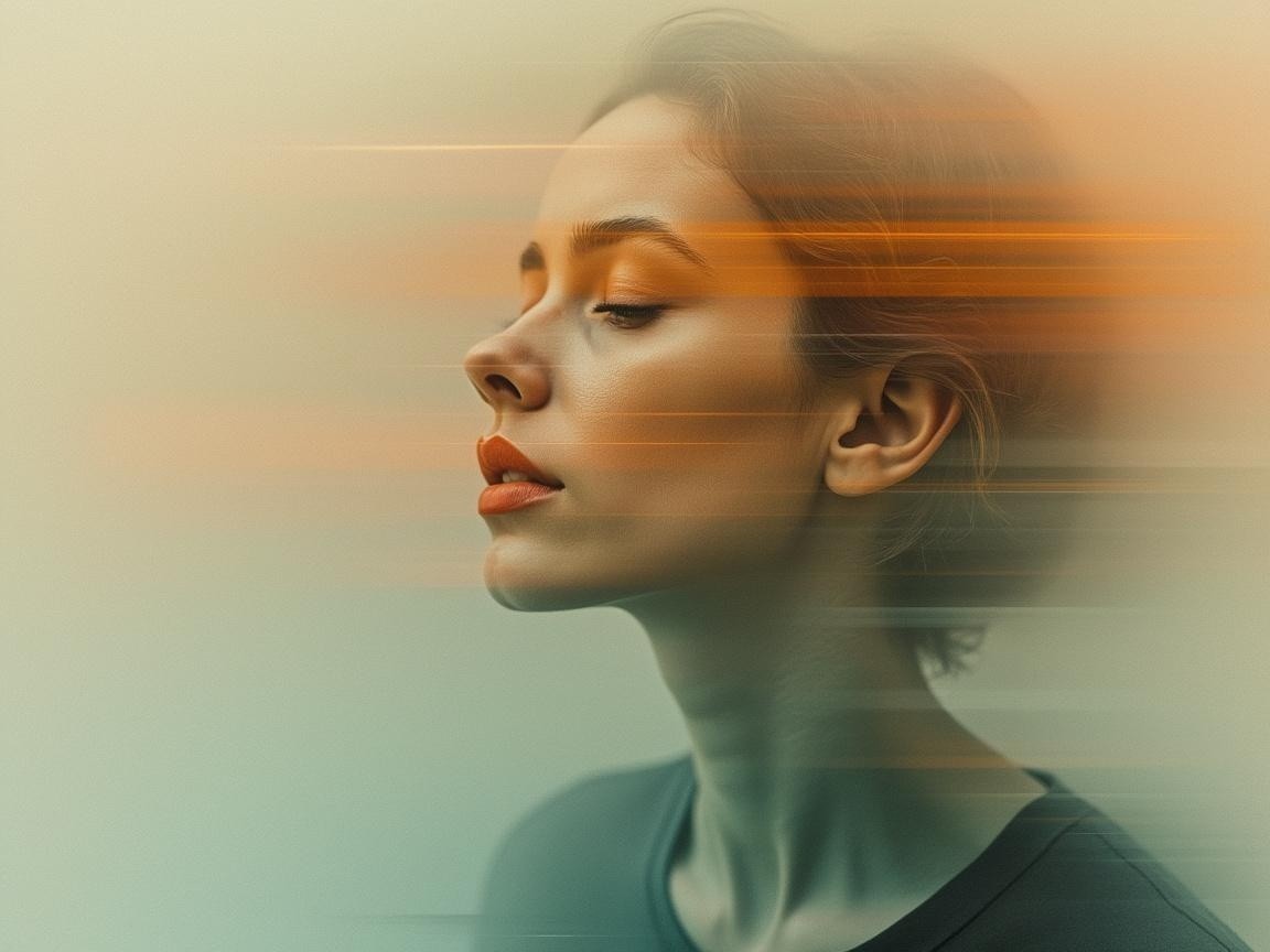 A serene profile of a young woman with closed eyes, exuding tranquility. Soft, blended colors create a dreamlike effect, enhancing the sense of calm and introspection.