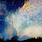 Cloud talking- in the color algorithm The man naled to a tree is the tree a cross with a blue spirit human connected to it -