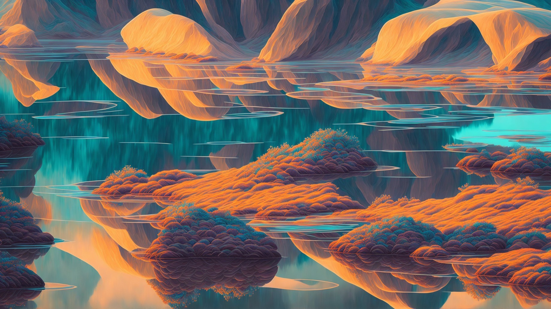 Prompt: Enhance!!! Beautiful teal and grey quilled textured landscape. Surrealism, futuristic, aesthetic. There could be nothing more peaceful than the river at dawn. The water seemed still as a lake, flowing imperceptibly with glassy surface from which first ray of the sun shone back through layer of softly curling steam.Blue sky. Beautiful day, white winter, surreal, Epic scenery. beautiful landscape, clear sky, beautiful high definition acrylic art in the style of Daniel Merriam, Ivan Bilibin, Ernst Haeckel, Caspar David Friedrich, Jacek Yerka and RHADS; line art, artstation, extremely detailed, intricate, beautiful, vibrant colours, award winning, fantastic view, fantasy, HDR, crisp quality Nikon D850 sharp focus elegant Award winning photography fantasy intricate very attractive beautiful dynamic lighting fantastic view high definition crisp quality colourful hdr focused Warm tones Impressionistic watercolors no deformities fit the subjects within the picture frame. image color harmony. fewer darks. Beautiful water reflections.
