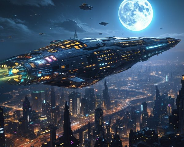 A sleek black futuristic train speeds across a tan desert, set against snow-capped mountains and a sunset sky. The rising Moon adds to the otherworldly ambiance of this stunning, detailed scene.