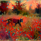Black Cat in Vibrant Wildflower Meadow at Dusk