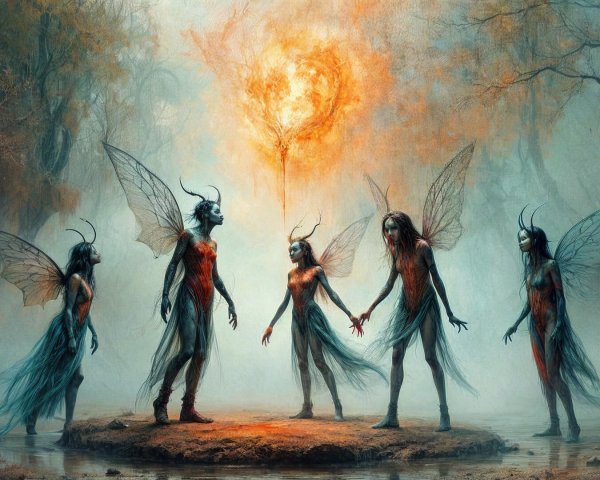 Prompt: Masterpiece quality, fantasy illustration, dreamlike lighting, painterly depth, hand-painted texture, mystical fairy warrior, albino Amazon princess, pale porcelain skin, long wavy blonde hair with floral embellishments, whimsical petal-like dress, tribal tattoos, radiant full moon, enchanted forest, stained-glass butterfly wings, vibrant red poppies, earthy tones, cosmic ornaments, optical illusions, surreal elegance, Fauvism, emotional watercolor depth, symbolic beauty, rich texture, poetic melancholy, fantasy fusion, mixed media look, ink and watercolor feel, canvas grain, GoBi™, Наталья И-ва, Nostalgiant, Brian Froud, Jean-Baptiste Monge, Loish, Stephanie Pui-Mun Law, Carne Griffiths, Tom Bagshaw, Henri Matisse, Bisa Butler, Faith Ringgold, Agnes Cecile, Anna Maria Horner.Metaphysics, astronomical fiery symbols, a woman with beautiful brown eyes, twisted horns in avant-garde hairstyle represent the fiery zodiac sign Aries , dynamic composition, overcoming obstacles,Spring mood, a slight smile, fantastic biomorphic Strelitzia fire blossoms, In the style of Roberto Matta, by Jeremy Mann, by James Gurney