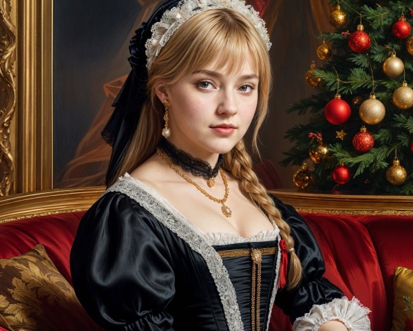 A stunning ceremonial portrait of a noble lady in Biedermeyer style by artist Dmitry Levin. The digital painting on ArtStation features cinematic lighting, ultra-realistic details, and a fantasy theme in 8k resolution.