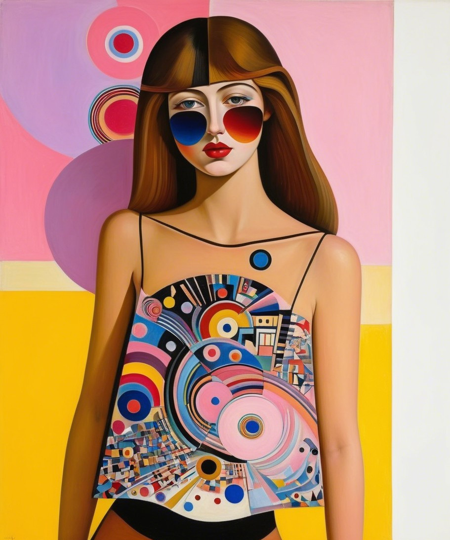 Prompt: Oil painting by Wassily Kandinsky and Kazimir Malevich. Light composition with a great number of delicate tones which often flow into each other. Light cold delicate colors with dominant pink, yellow, blue and black, pencil sketch, naive art, 16k, primitivism, multiple exposure, multilayer, multilayered three-dimensional drawing
