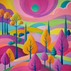 Vibrant Landscape with Whimsical Trees and Sun