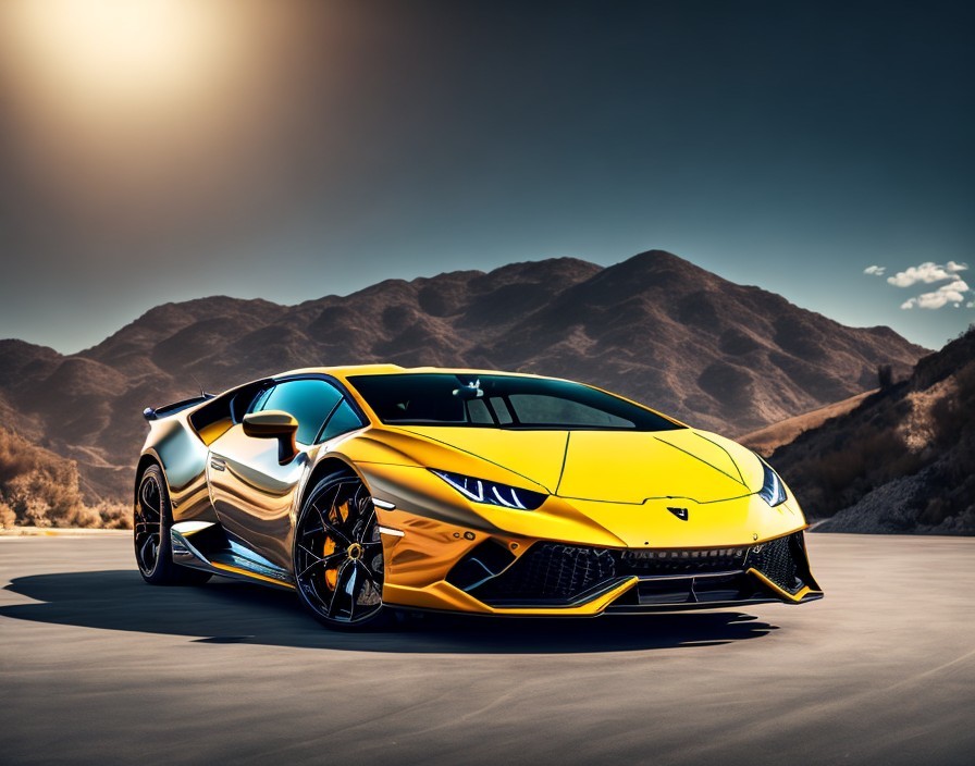 Prompt: "Lamborghini Huracan's sleek, angular silhouette, with its sharp creases and curved surfaces gleaming in the light. The car's exterior is a masterful blend of aggressive lines, aerodynamic curves, and premium materials.