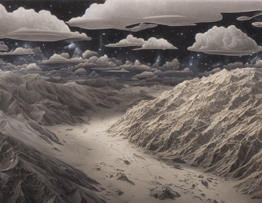 Layered Mountains and Multiple Moons in Surreal Night Sky