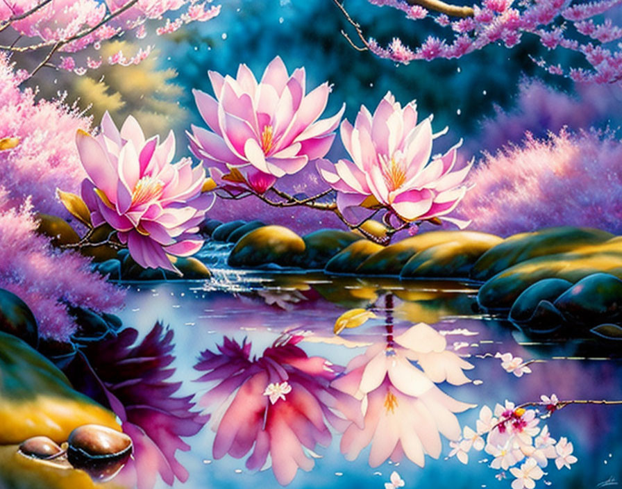 a beautiful lake with ivy, watercolor, wet on wet, splash effect, splash, Steve Hanks