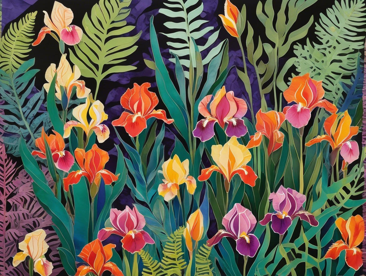 Colorful Flowers and Lush Foliage in Garden Scene