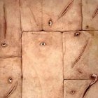 The image features two cartoonish eyes mounted on a wall, resembling a face. The eyes are set against a beige backdrop, giving a playful and whimsical impression.