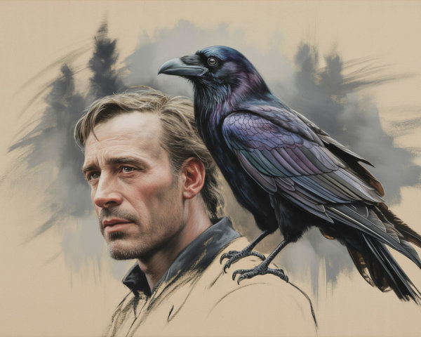 A mysterious figure stands on a rocky landscape, clad in a regal purple cape and holding a glowing staff. The scene is set against a dramatic night sky with a full moon and distant mountains.