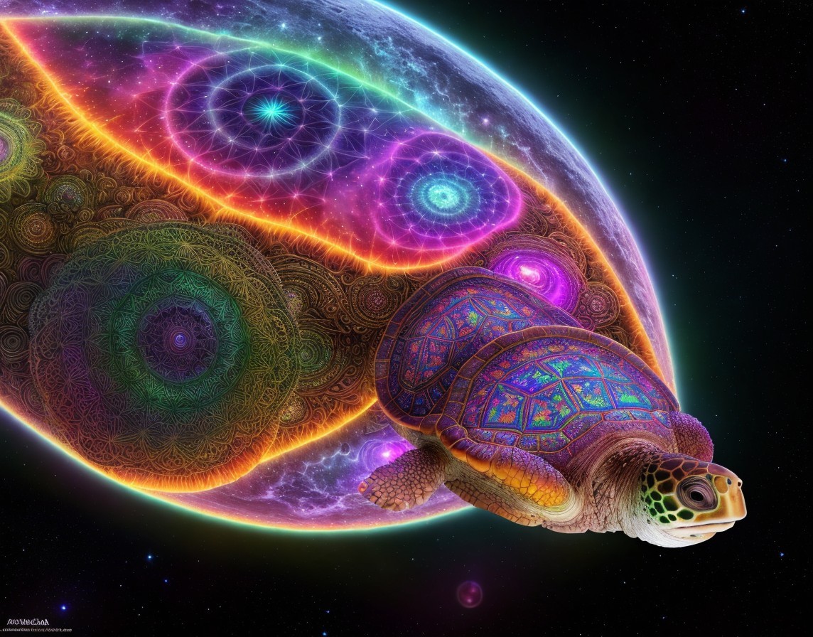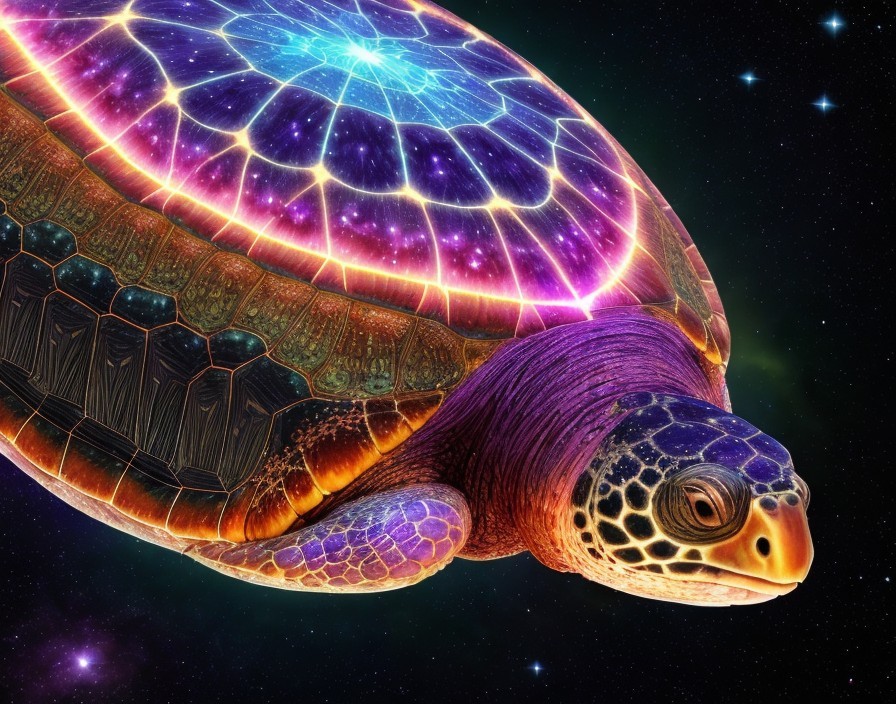 Colorful Cosmic Turtle with Galaxy Shell in Space
