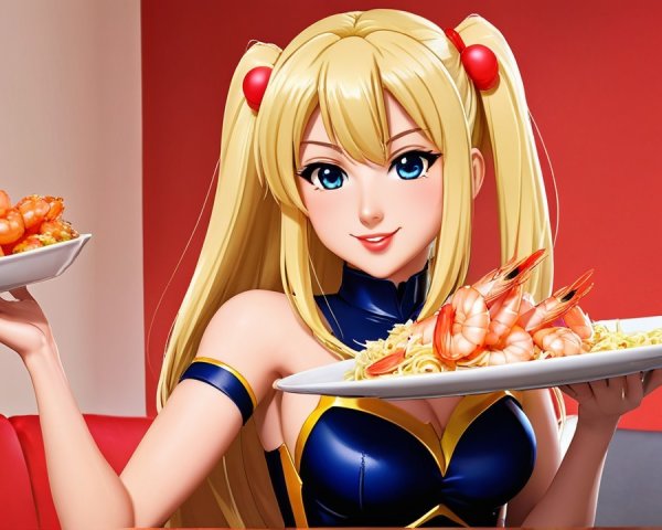 A girl in a colorful swimsuit poses playfully beside a tank, showcasing a unique blend of anime and Minecraft art styles that captures a fun and vibrant atmosphere.