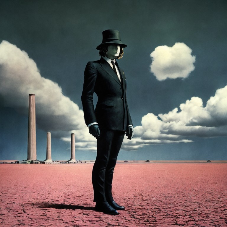 Person in Dark Suit Stands on Cracked Red Terrain