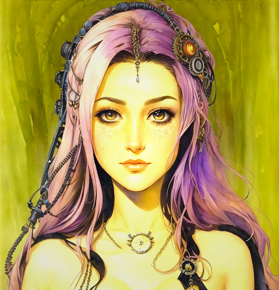 Stylized Steampunk Portraiture of teenage temptress drawn with watercolour and ballpen, dynamic lighting 1.7, blotting quill pen, style of Overton Loyd, Florianne Becker, Overton Loyd, Lin Fengmian, John Reuss, Jean-Sebastien Rossbach, Marianne Stokes, Justin Gaffrey, John Lowrie Morrison, Patty Maher merged with70ies adult european comic art style, ballsy strokes, squiggly line, eerie, colored with colourful aquarelle, grain, hues, stylized comic art, coherent, brightness 1.9, layered, Figurative, romantic, back-lit, delicate coloring, abstract, intricate, geometrical, gorgeous, tetradic color scheme Emerald pink green beige, beautiful composition, synthetic, heretic, sumptuous, extremely intricate fine lines, filigrane tiny lines, quilling, quaint, folded paper style, cel-shaded, golden ratio, high coloring, brushed textures 1.7, ambient occlusion 1.5, anisotropic filtering 1.7, raytraced shadows 1.8, sublime, brightness 1.4, tetradic color scheme purple pink lilac amber, stacked-up perspective 1.9, comical sketch art, geometrical features, octane render illustration, dreamscape, Fantasy art, gothic background, Beautiful portrait sculpture of a female face, style of 1970s fantasy art, metallic colour, geometrical illustrative style merged with storybook illustration, triadic color scheme pink beige purple, soft pastel colors, watercolors and ink, beautiful, intricate, crisp quality, limited pallet, abstract, maximalism brightness 1.4, 8k, devilish eyes 1.7, american gothic 1.7, plasticity 1.9, juvenile, glossy, soft rounded edges, muted limited pallet, vaporous lighting, plasticity 1.6, complexion 1.4,