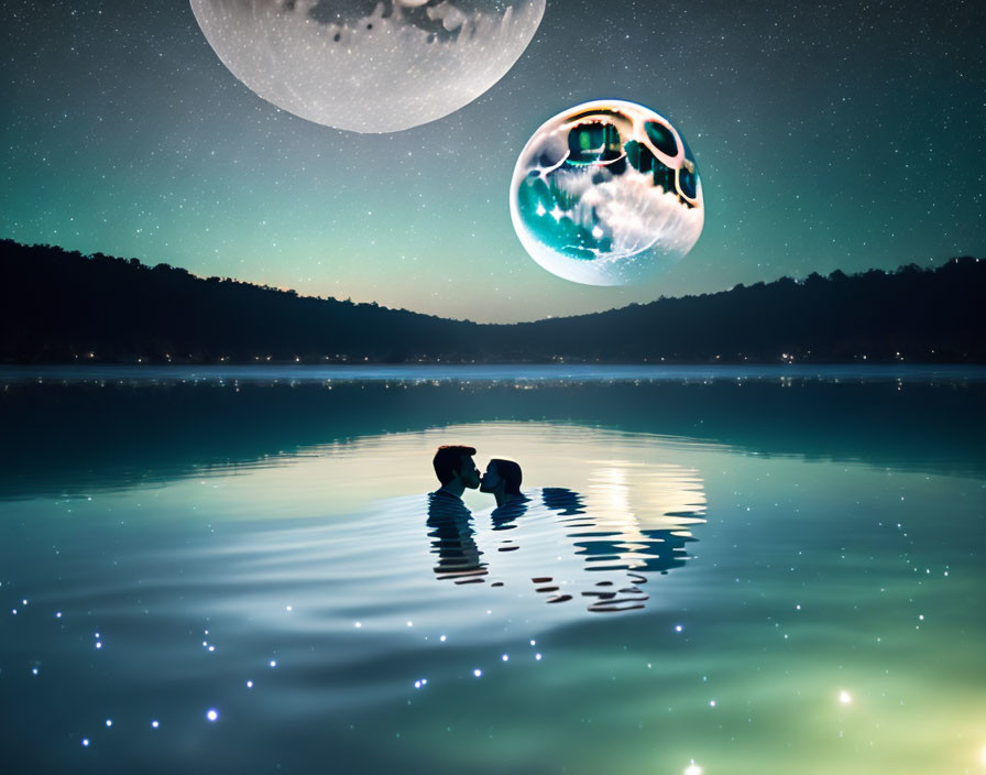 Amantes en el agua bajo la luna llena