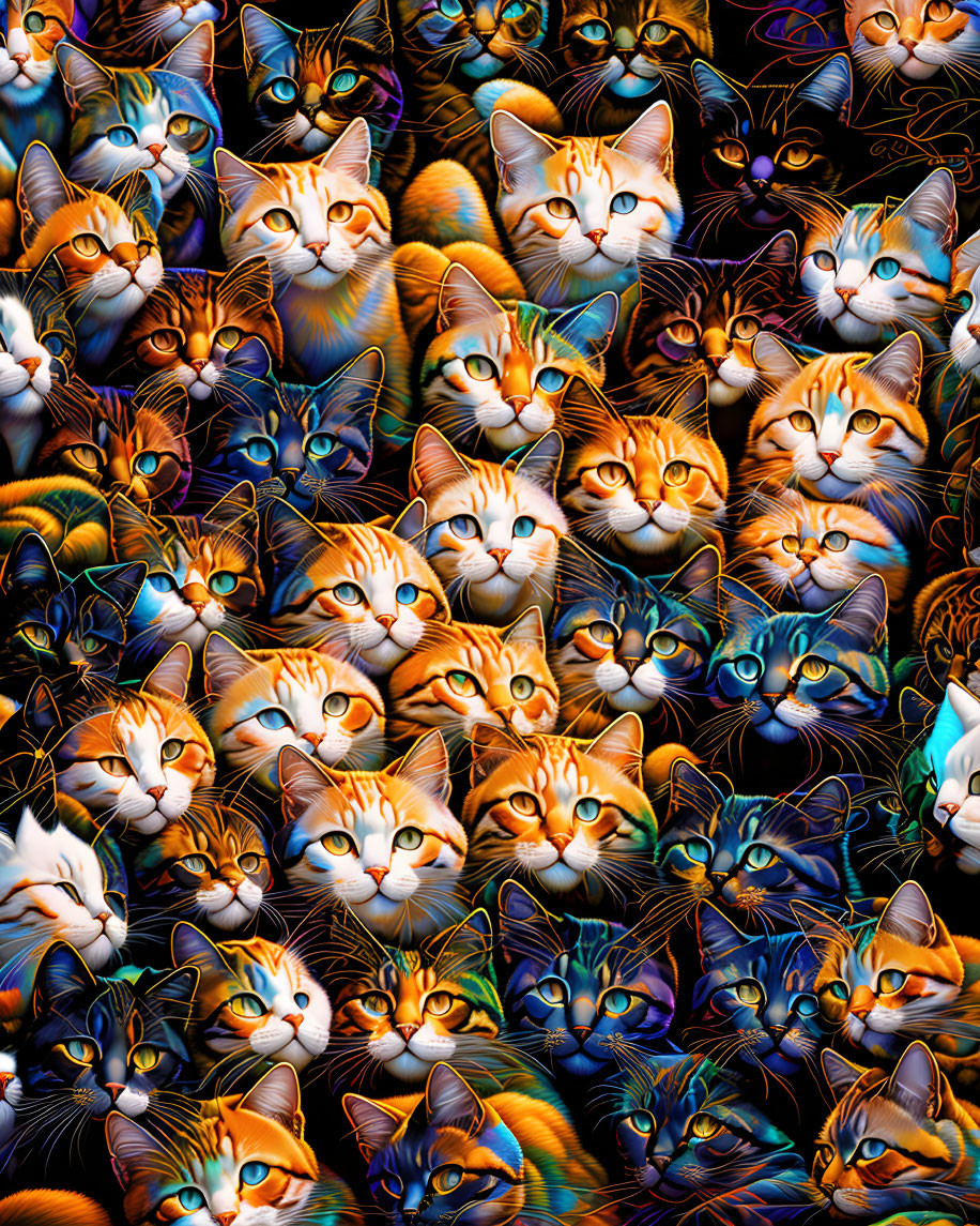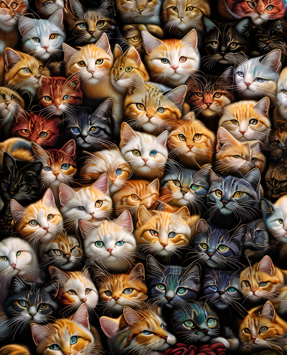 + Prompt:psychedelic cats art style by Leiji Matsumoto, Jackson Pollock, Vladimir Kush, Mondrian, James jean, Dan witz. High quality, highly detailed, intricate details.dynamic lighting award winning fantastic view ultra detailed high definition hdr focused glow shimmer