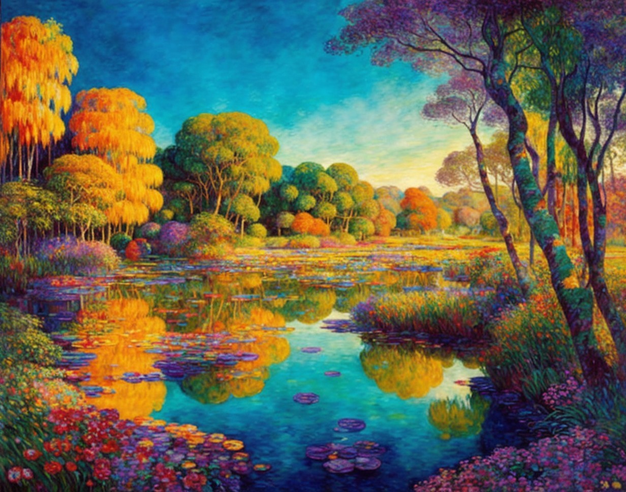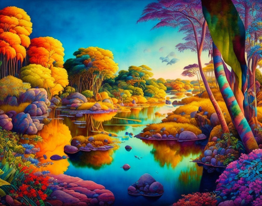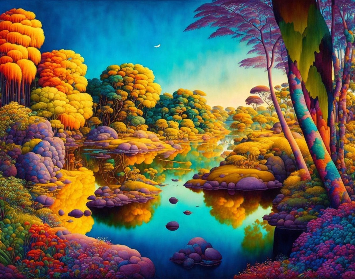 3D watercolor patchwork, fantastic wide view, spectacular sunrise over a beautiful teal-green rainforest, azure-colored winding river, satiny, high quality, shimmering, elegant, with vibrant spectacular colors, elegant, highly detailed, glistening magic style, by Monet, with elements in the style of Jan Toorop and elements in the style of Gustav Klimt
