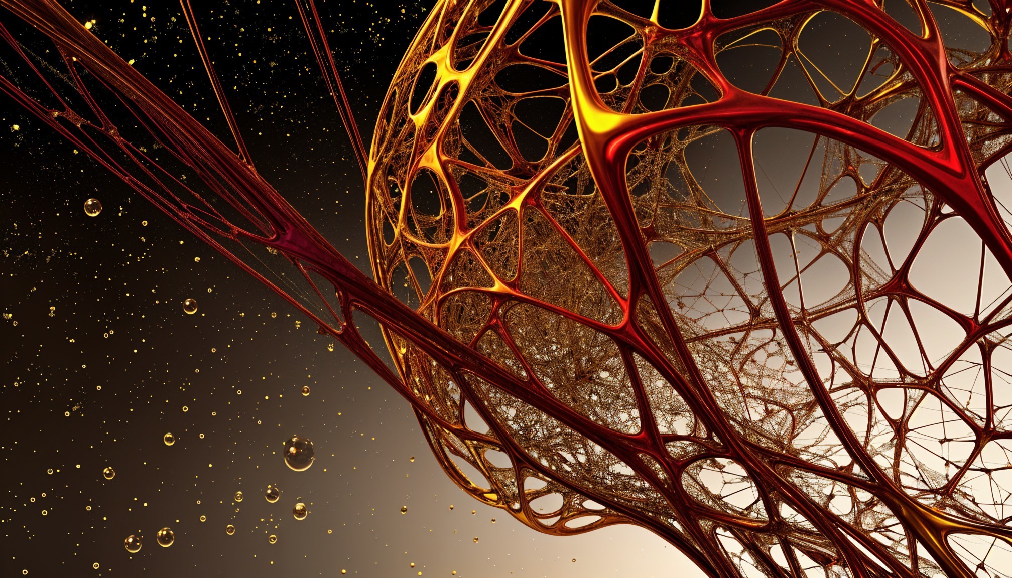 A vibrant, abstract design featuring swirling lines and glowing orbs. Rich hues of red and gold create a dynamic, energetic atmosphere, evoking a sense of movement and cosmic wonder.