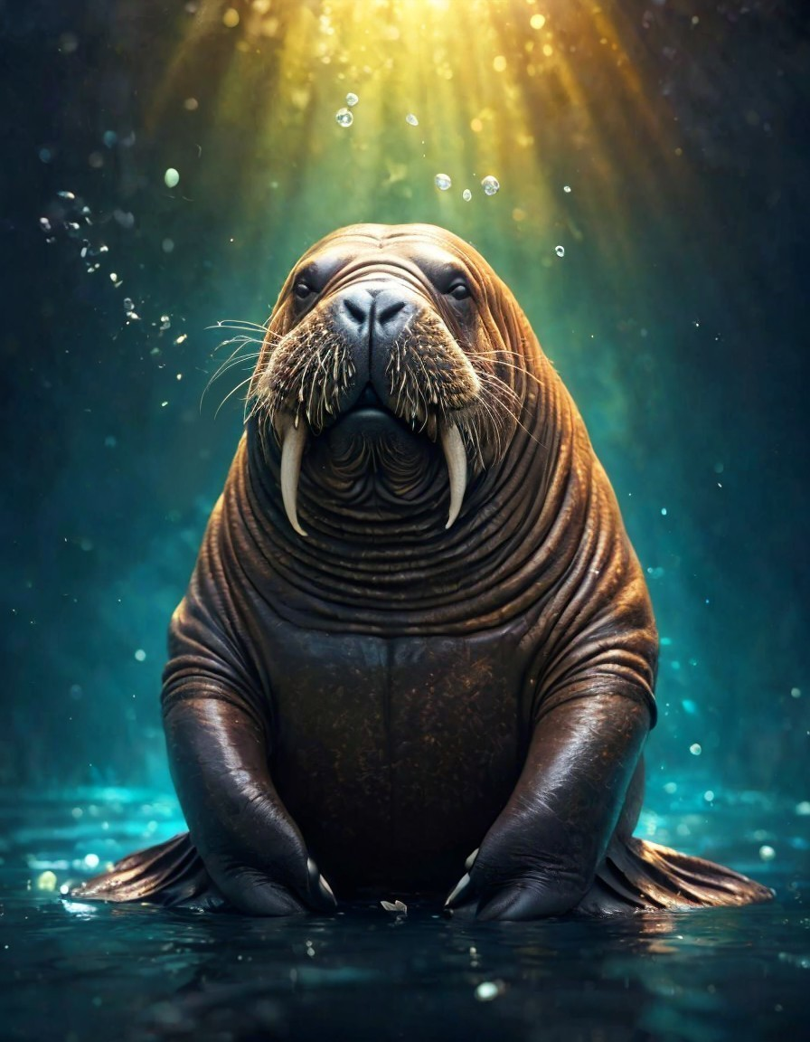 A serene meditative walrus on the threshold of paradise.