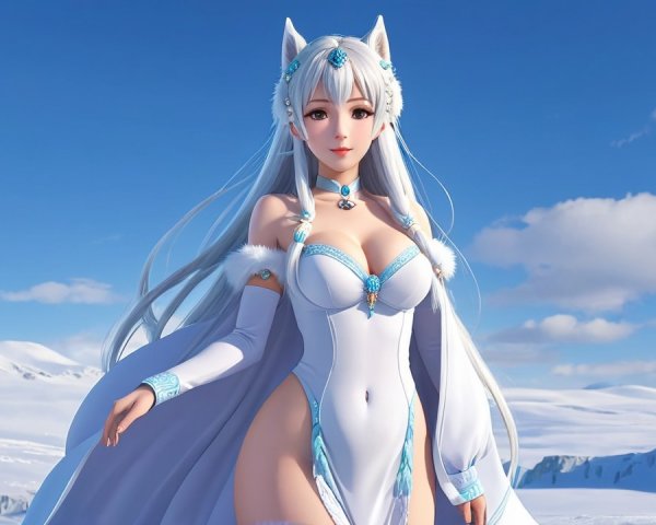 A charming anime character featuring a Siberian mermaid with sparkling blue scales, flowing hair, and playful expressions. She embodies the beauty of the ocean and the mystique of the Arctic.