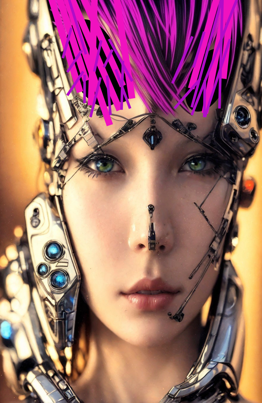 Detailed Close-Up of Female Android with Cybernetic Features and Pink Hair