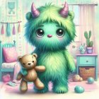 Whimsical Scene with Fluffy Green Creature