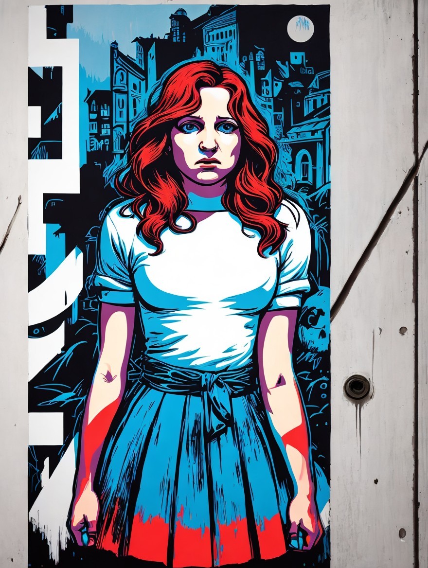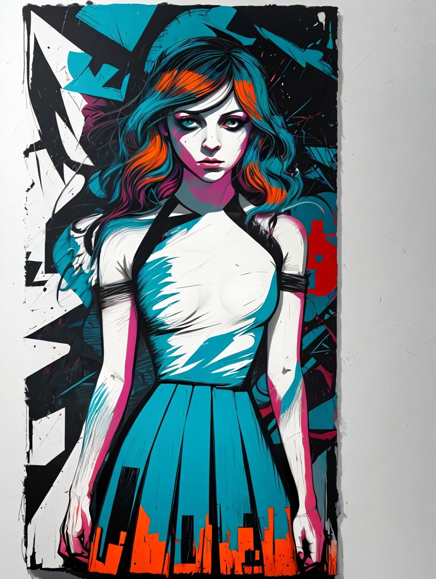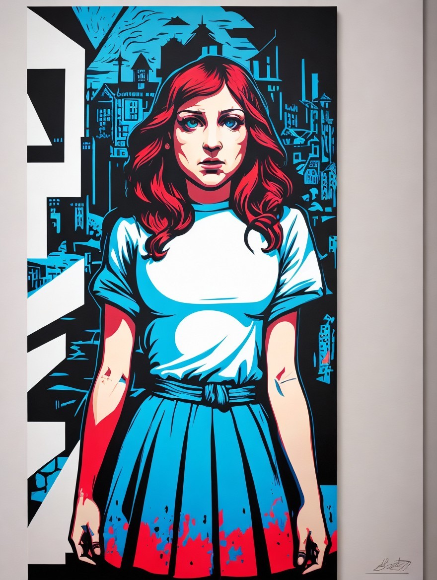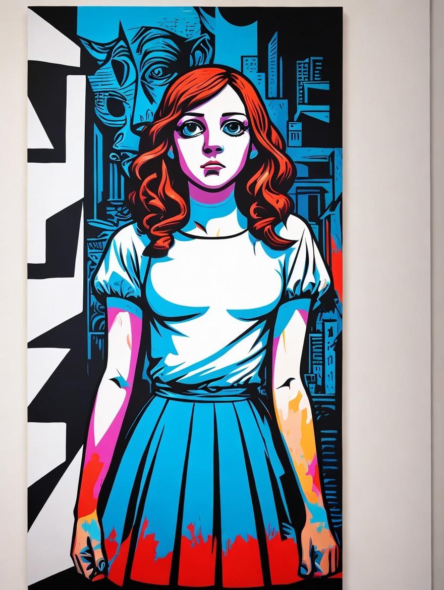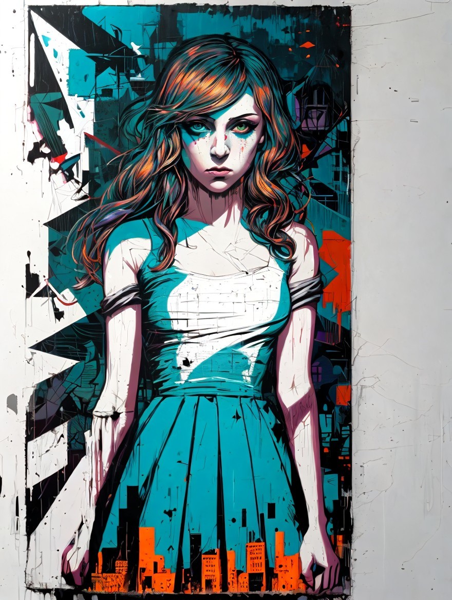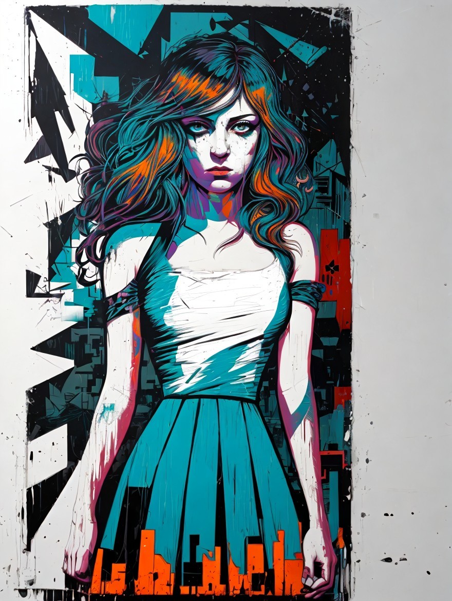 Artistic statement: This piece balances Dan Mumford’s pop-graphic density with symbolic surrealism inspired by late Picasso. It softens hard linework with organic flow and introduces subconscious motifs in the background—fish, abstract signals, dreamlike curvature—without slipping into full abstraction. The girl is no longer just afraid, but entwined with the psyche of the city around her.