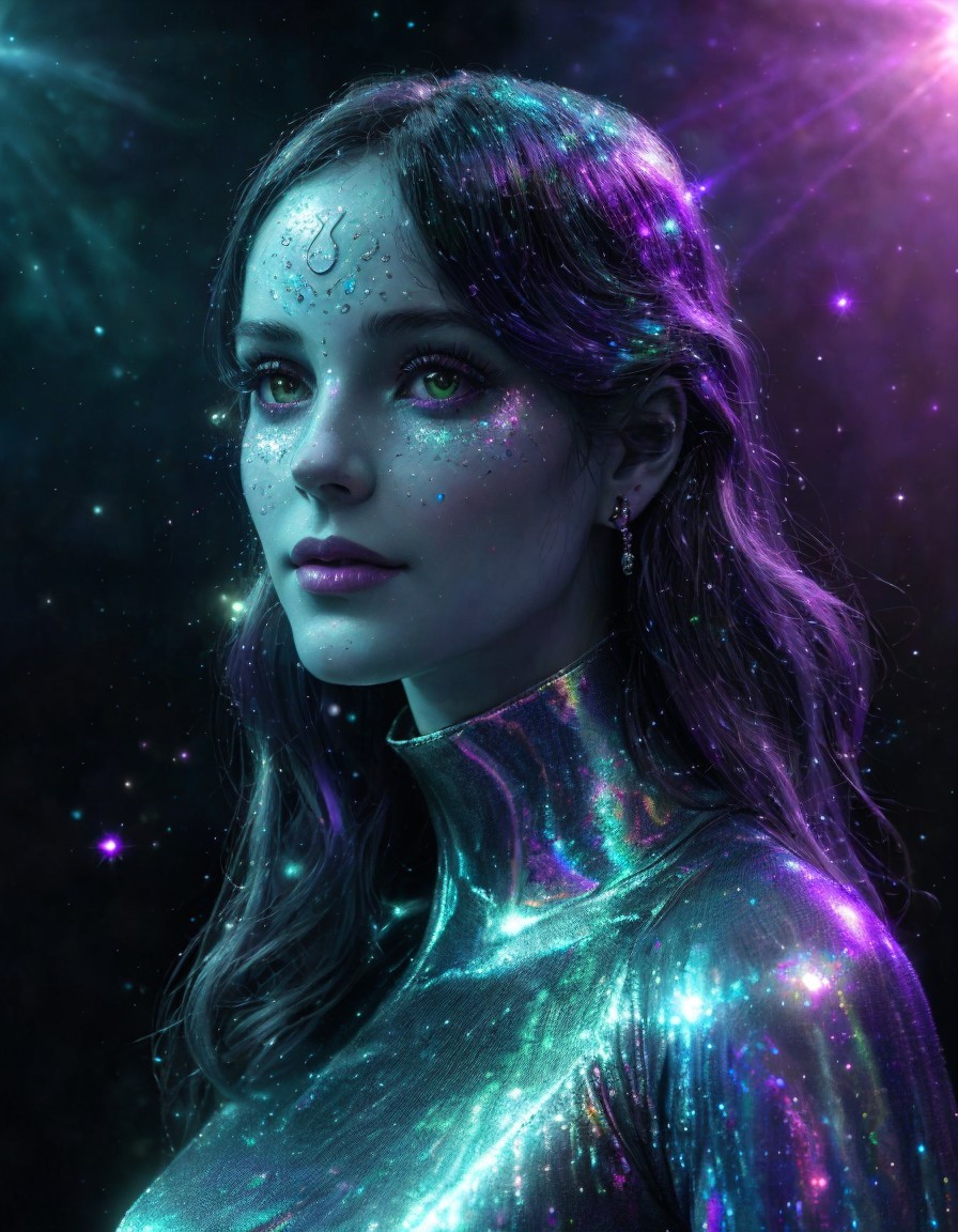 Alien projection with a holographic face and seamless 3D fractals amidst effervescent light particles, all captured with volumetric lighting and maximalist alcohol ink effect, shimmering textures bathed in a dreamy glow, inspired by the likes of Alex Gray, Anna Dittmann, Arthur Rackham, and Android Jones, with the science fiction ambiance and intricacy reminiscent of Jacob Lawrence and Francis Picabia, ultra fine, ultra-realistic, octane render, masterpiece level