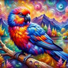 Vibrant Parrot in a Surreal Colorful Landscape