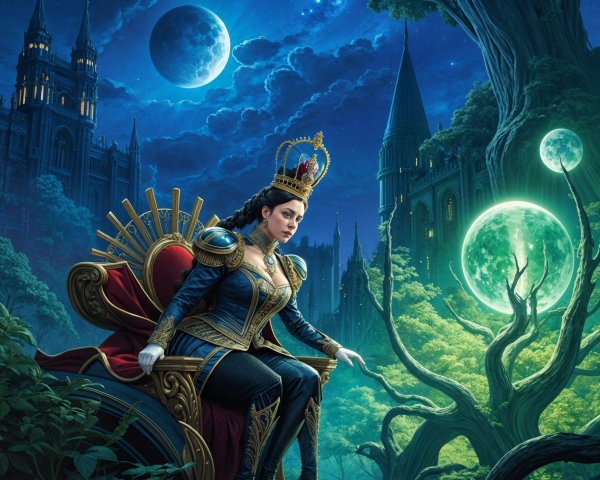 A surreal scene featuring a massive, futuristic whale-like creature with iridescent scales and mechanical elements. Two figures stand beside it, one in a suit and the other in a flowing outfit, amid a rainbow backdrop.