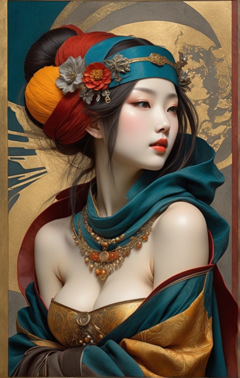 + Prompt:Legend of the Girl of the underworld. Medieval Japanese Artists Sumi-e Style, Velvet Black, Shabby, Dull Gold, Amber Gray, Golden Ratio, Surreal Fantasy, Elegant, High Definition Ultra Fine 3D Line, Zenangle Style, Watercolor Patchwork , Arthur Rackham Style, Paul Kidby, Gediminas Prankevicius, Jacek Jerka, Extremely Detailed, Intricate, Thoughtful, HDR, Fractal, Beautiful..