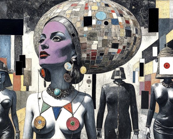 The artwork features a vibrant collage of eyes and landscapes, merging abstract patterns with serene nature scenes, showcasing a blend of emotions, colors, and celestial themes.