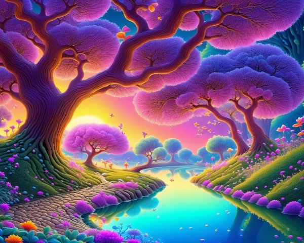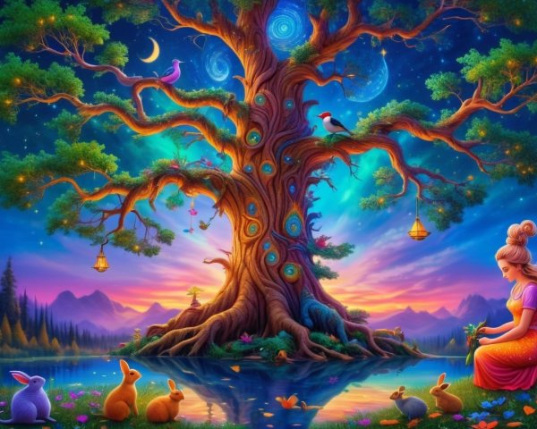 A vibrant, psychedelic cat representing Aquarius, adorned with intricate patterns and bright colors, elegantly pours water from a jug. This enchanting feline embodies fantasy and beauty in a captivating circular design.