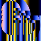 An abstract painting showing a dark-skinned, almost black, androgynous sculpture of a woman on the left, looking directly at the viewer with bright yellow, glowing eyes and bright teal hair. The abstract painting on the right side of the image features a very detailed green and dark green camouflage-