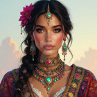 Portrait of a Young Woman in Vibrant Traditional Attire